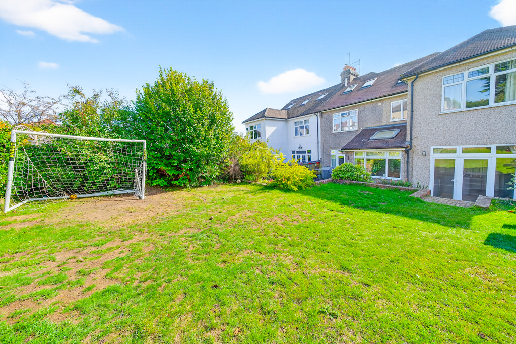 The rear garden extends to approximately 43ft x 35ft, providing an ideal outdoor retreat for children to play, summer barbecues, or simply unwinding at the end of the day. A garage adds further practicality, with off-street parking enhancing day-to-day convenience.